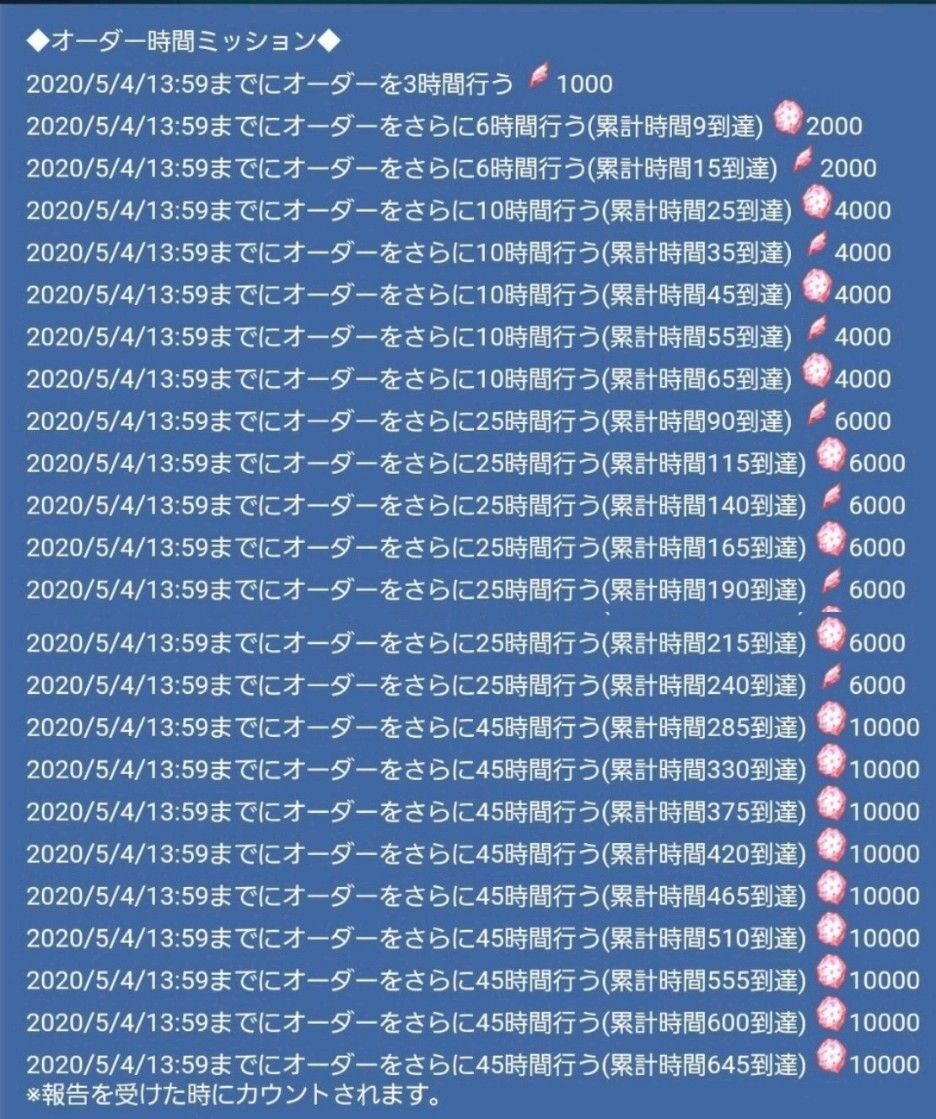ジャスト入力回数、魔鏡技使用回数、オーダー時間ミッションは継続なので合計6種類になりました(•ㅂ•)/